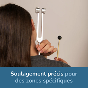 Place the tuning fork on the area where you feel tightness. It is designed to resonate through muscles and joints for instant release.